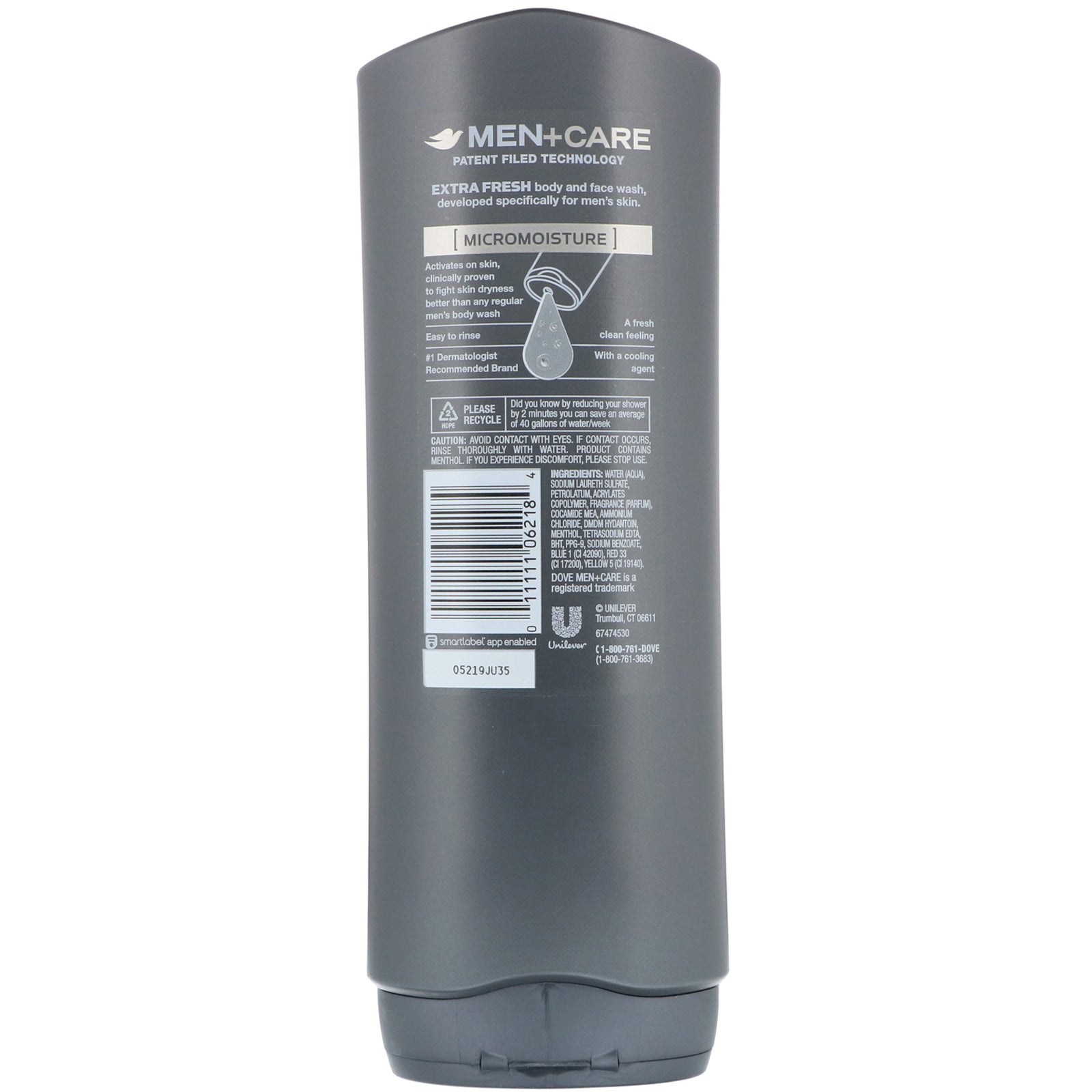 Cooling Agent Micro Moisture Patent Filed Technology Easy to Rinse #1 Dermatologist Recommended Brand A Fresh Clean Feeling Extra Fresh Body and Face Wash, Developed Specifically for Men's Skin. Micromoisture Activates on skin, clinically proven to fight