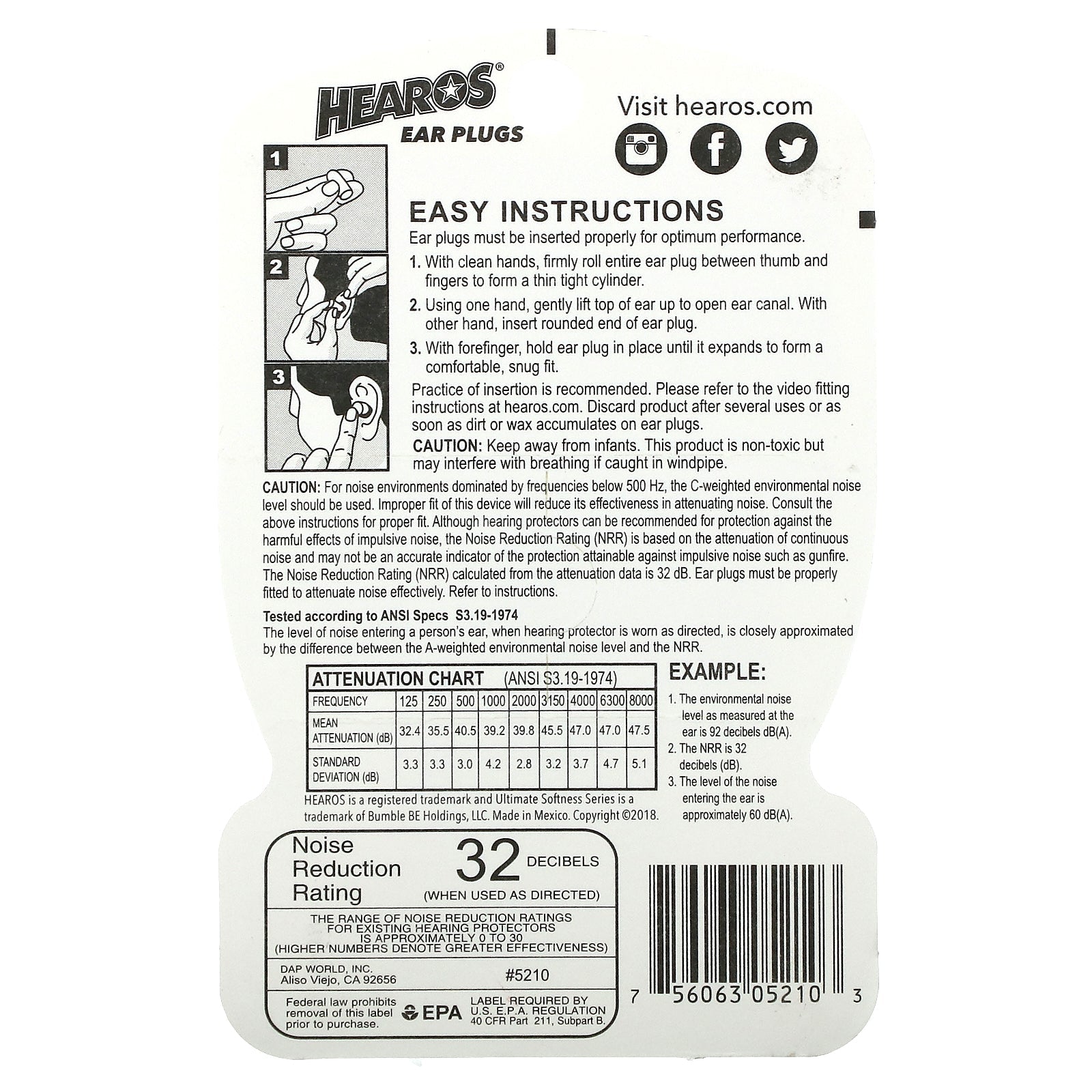 Ultimate Softness Series™ NRR 32 Tested according to ANSI Specs S3.19-1974 The level of noise entering a person's ear, when hearing protector is worn as directed, is closely approximated by the difference between the A-weighted environmental noise level
