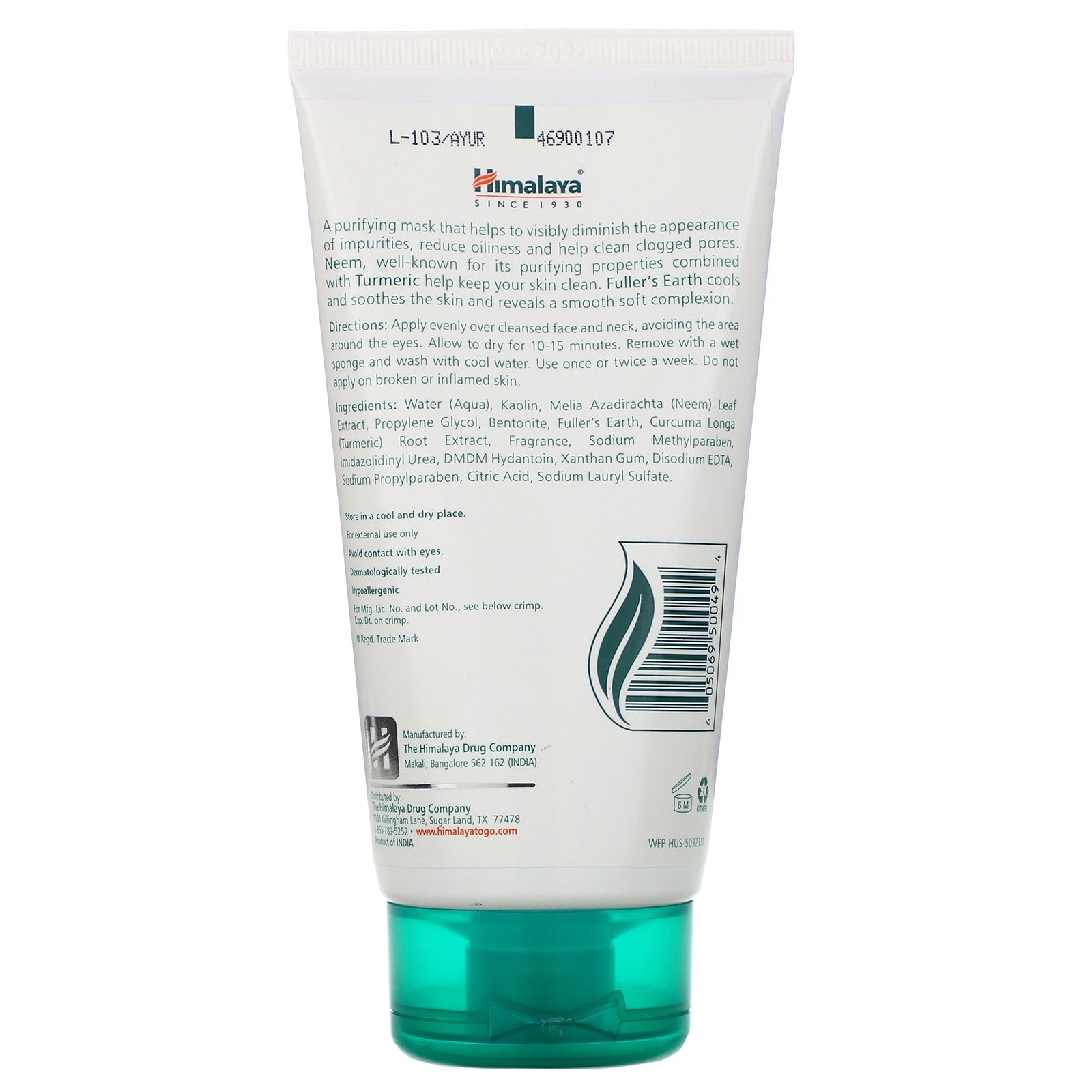 Since 1930 Removes Impurities, Dead Skin and Excess Oil Neem - Turmeric Happiness through Wellness Normal to Oily Skin Dermatologically Tested Hypoallergenic A purifying mask that helps to visibly diminish the appearance of impurities, reduce oiliness a
