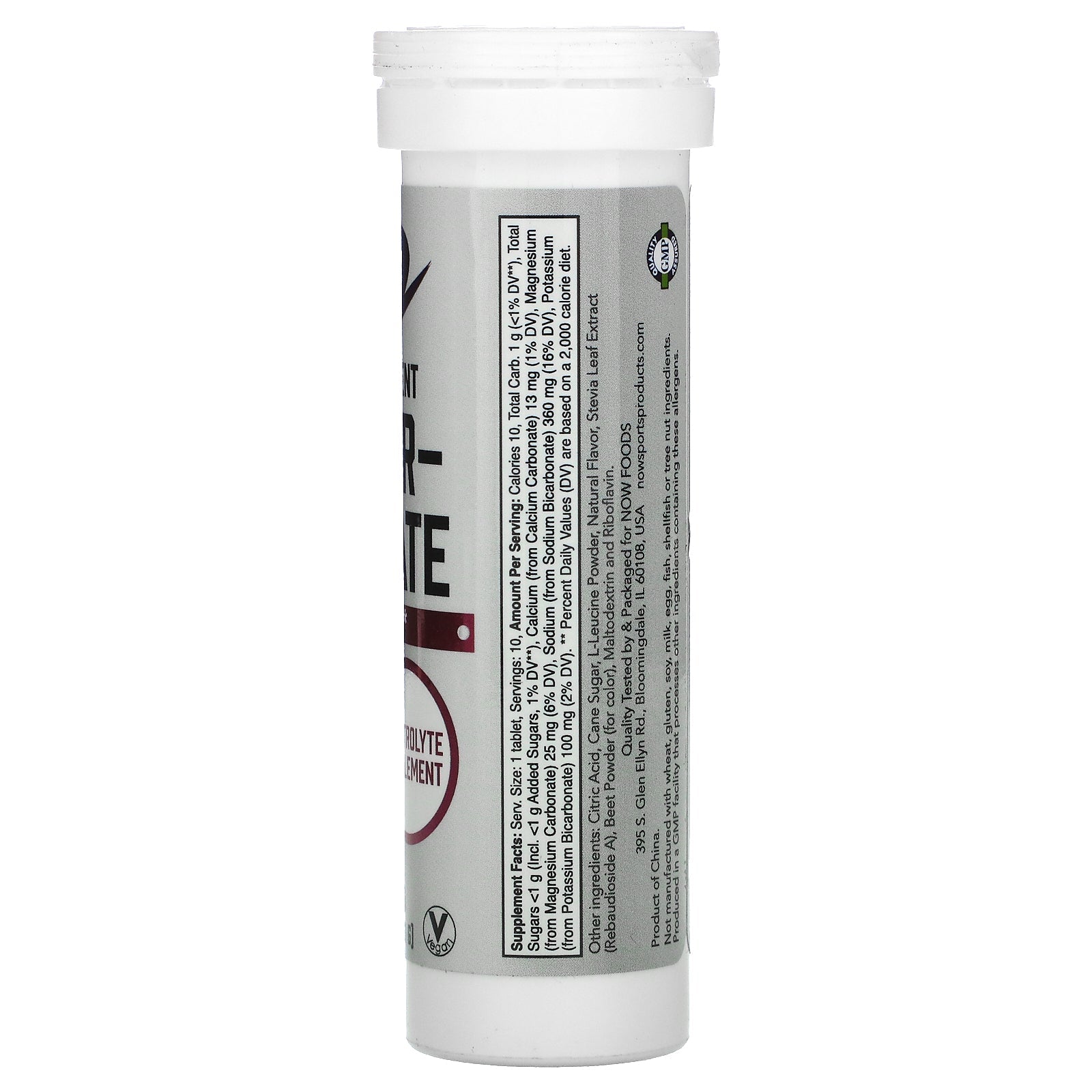 Effervescent Recovery Electrolyte Supplement Vegan GMP Quality AssuredSugg. UseDissolve 1 tablet daily into 16 oz. of water.Other IngredientsCitric acid, cane sugar, l-leucine powder, natural flavor, stevia leaf extract (rebaudioside A), beet powder (for color), maltodextrin and riboflavin. Not manufactured with wheat, gluten, soy, milk, egg, fish, shellfish or tree nut ingredients. Produced in a GMP facility that processes other ingredients containing these allergens.Supplement FactsServing Size: 1 tablet Serving Per Container: 10 Amount Per Serving %Daily Value Calories 10 Total Carb. 1 g <1%** Total Sugars (Incl. <1 g Added Sugars) <1 g 1%** Calcium (from Calcium Carbonate) 13 mg 1% Magnesium (from Magnesium Carbonate) 25 mg 6% Sodium (from Sodium Bicarbonate) 360 mg 16% Potassium (from Potassium Bicarbonate) 100 mg 2% **Percent Daily Values (DV) are based on a 2,000 calorie diet.DisclaimerWhile VitaminsUK strives to ensure the accuracy of its product images and information, some manufacturing changes to packaging and/or...