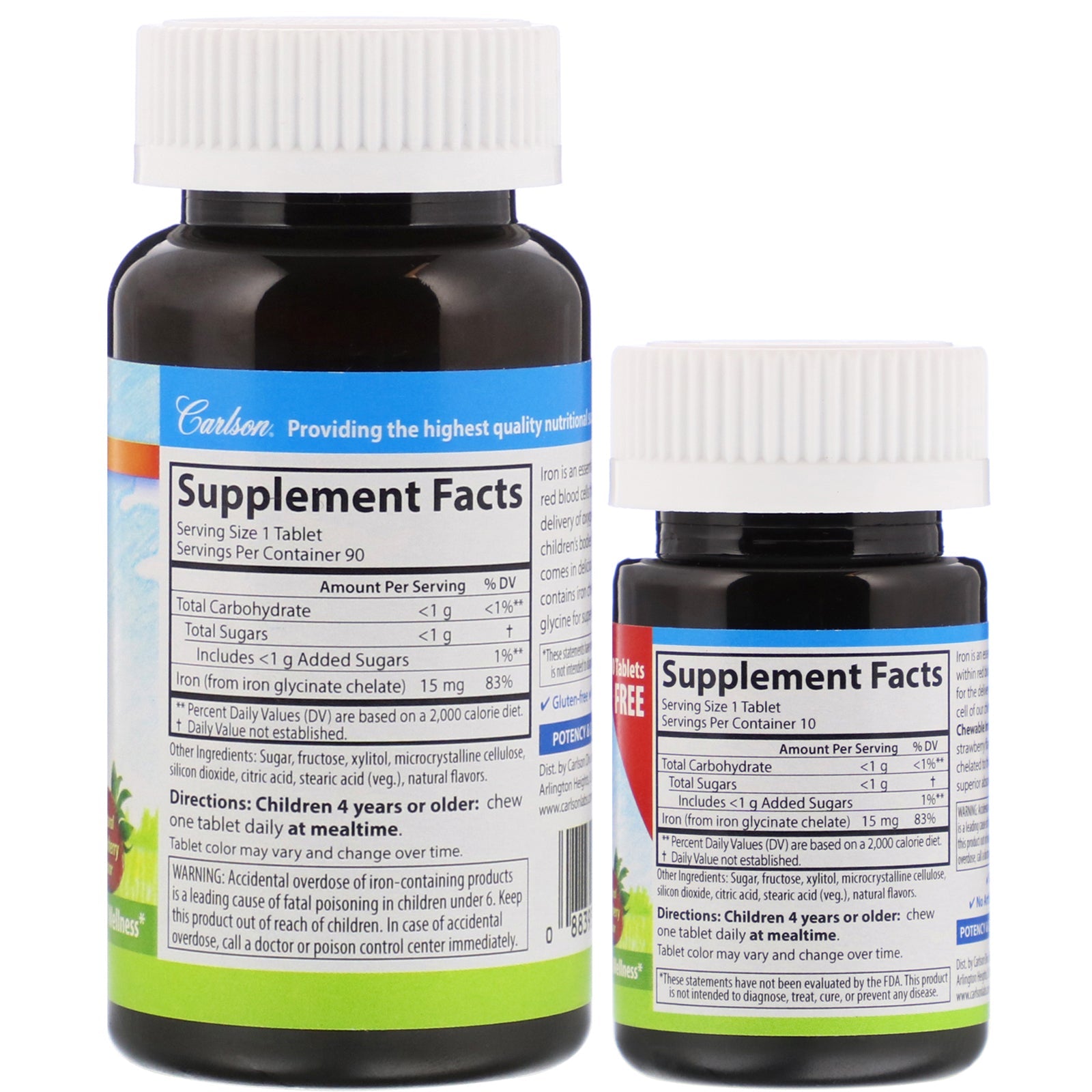 Carlson Labs, Kid's Chewable Iron, Natural Strawberry Flavor, 15 mg, 90 Tablets