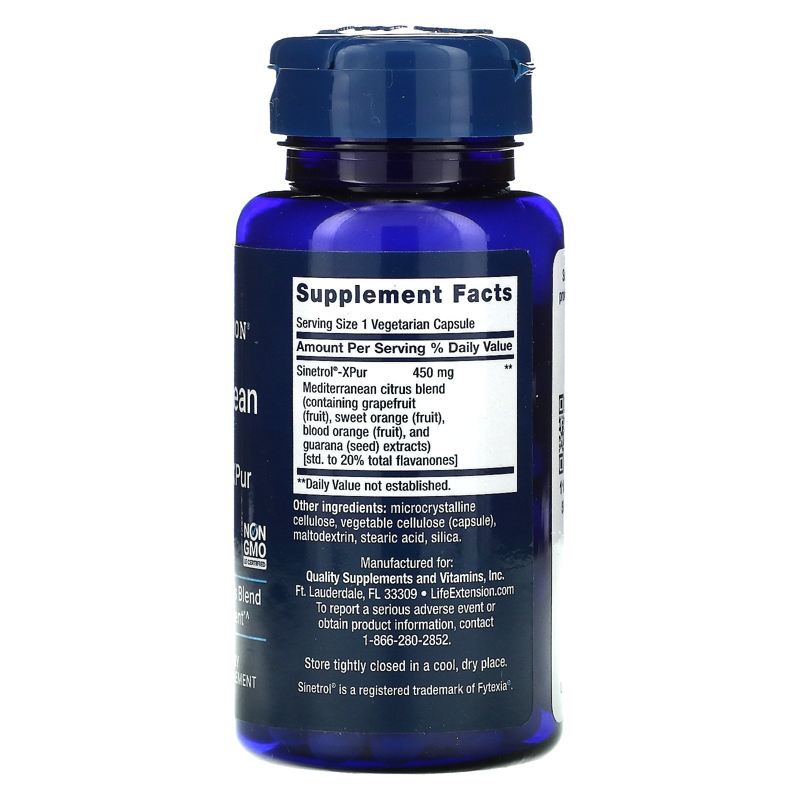Serving Size: 1 Vegetarian Capsule Amount Per Serving: % Daily Value Sinetrol™-XPur Mediterranean citrus blend (containing grapefruit (fruit), sweet orange (fruit), blood orange (fruit), and guarana (seed) extracts) [std. to 20% total flavanones] 450 mg ** **Daily Value not established.Disclaimer