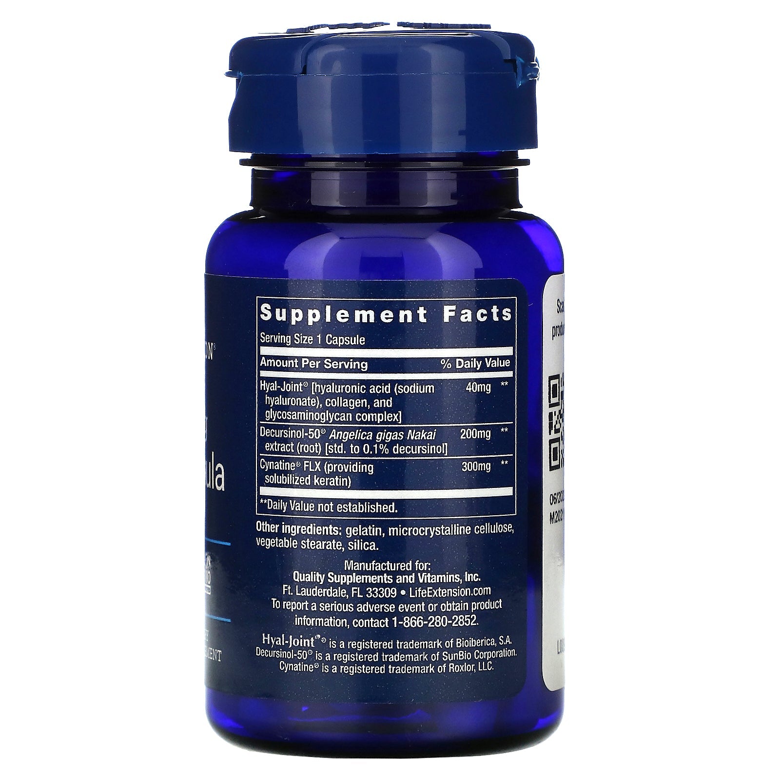 Serving Size: 1 Capsule Amount Per Serving % Daily Value Hyal-Joint® [Hyaluronic Acid (sodium hyaluronate), collagen, and glycosaminoglycan complex] 40 mg ** Decursinol-50® (Angelica gigas Nakai extract (root) [std. to 0.1% decursinol] 200 mg ** Cynatine® FLX (providing solubilized keratin) 300 mg ** **Daily Value not establishedDisclaimer