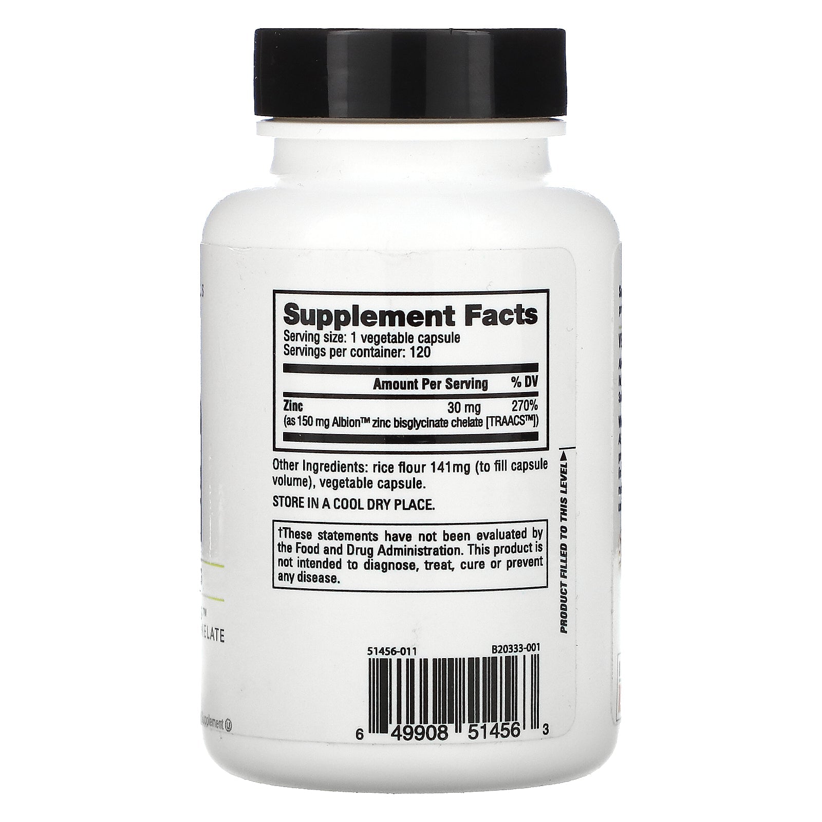 Daily Essentials TRAACS™ Zinc Bisglycinate Chelate Mineral Supplement Kosher Vegetarian Gluten Free Non-GMO Lactose Free Albion™ Minerals Since 1996 Manufactured in Our GMP & FDA Inspected Facility Made in USA with Ingredients Sourced World WideSugg. UseAs a dietary supplement, take 1 capsule daily, preferably with meal, or as directed by your physician.Other IngredientsRice flour 141 mg (to fill capsule volume), vegetable capsule. Allergen free, no artificial color, flavor or sweetener, no preservatives, no starch, no sugar, no soy, no wheat, no yeast, no fish, no milk, sodium free.Supplement FactsServing Size: 1 vegetable capsule Serving Per Container: 120 Amount Per Serving %Daily Value Zinc (as 150 mg Albion™zinc bisglycinate chelate [TRAACS™]) 30 mg 270%DisclaimerWhile VitaminsUK strives to ensure the accuracy of its product images and information, some manufacturing changes to packaging and/or ingredients may be pending update on our site. Although items may occasionally ship with alternate packaging, freshness is always...