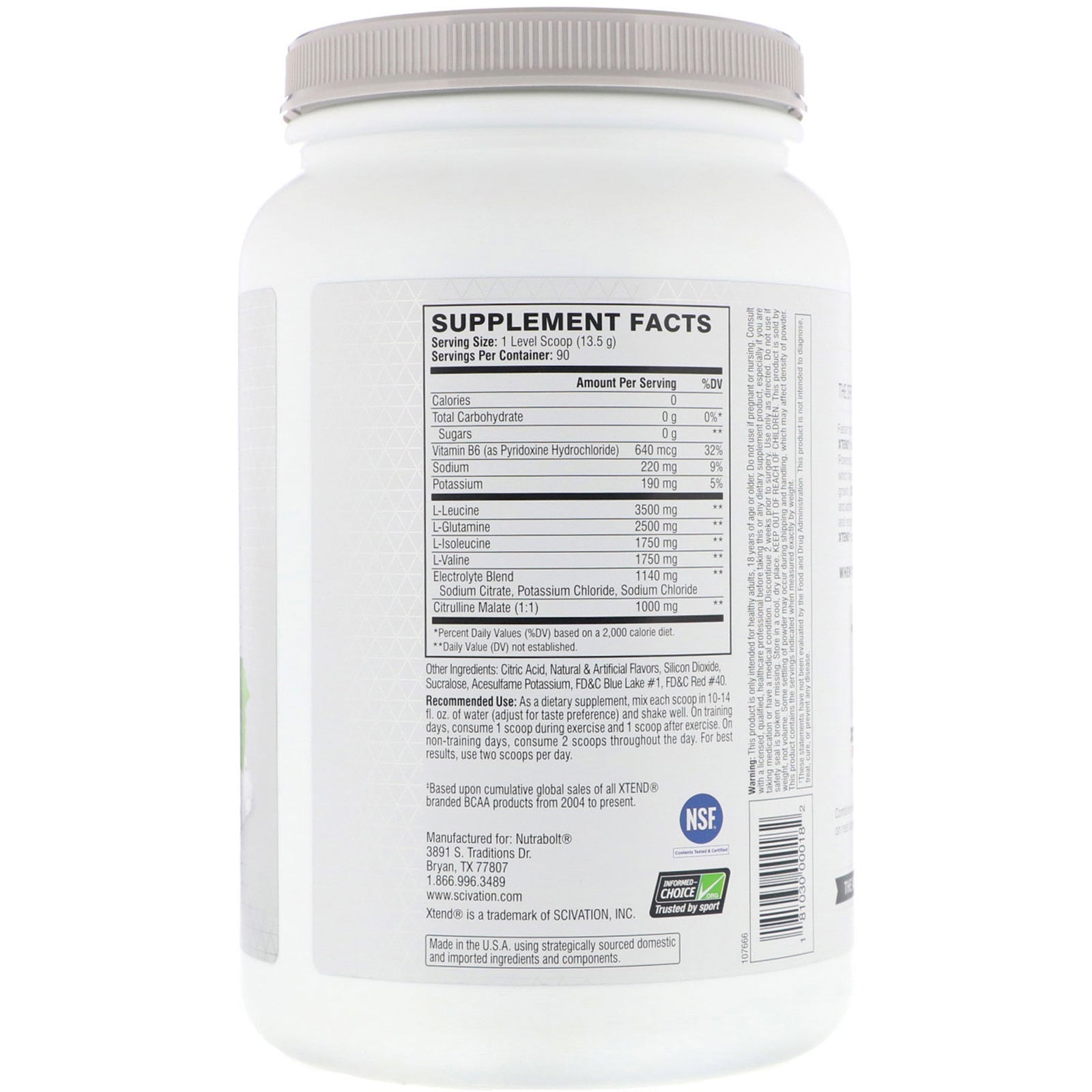 7 g de BCAA* Recuperación muscular + Electrolitos Con sabor natural y artificial 0 Calorías* 0 g Carbohidratos* 0 g Azúcar* 90 porciones Suplemento dietético NSF - Contenido probado y certificado Informed-Choice.Org - Confiado por el deporte La marca de BCAA número uno del mundo‡ El oficial Marca de recuperación de campeones. Una recuperación más rápida es la clave para obtener mejores resultados. Durante más de 10 años, Xtend fabrica los mejores productos de recuperación del mundo. Desarrollado por 7 gramos de aminoácidos de cadena ramificada (BCAA), que clínicamente se ha demostrado que apoyan la recuperación y el crecimiento muscular, Xtend Original también contiene electrolitos hidratantes e ingredientes de rendimiento adicionales para ayudarlo a repostar, repararse y recuperarse. Pruebe todos los deliciosos sabores sin azúcar de Xtend para respaldar sus objetivos de acondicionamiento físico. Cuándo tomar Xtend para obtener mejores resultados: Pre-entrenamiento - Xtend Energy Intra-entrenamiento - Xtend Original Post-entrenamiento - Xtend Pro Combínelo con cualquier producto de la marca Xtend todos los días, incluso en los días de descanso, para ayudar a maximizar su recuperación. *Por porción. ‡Basado en las ventas globales acumuladas de todos los productos BCAA de la marca Xtend desde 2004 hasta el presente.