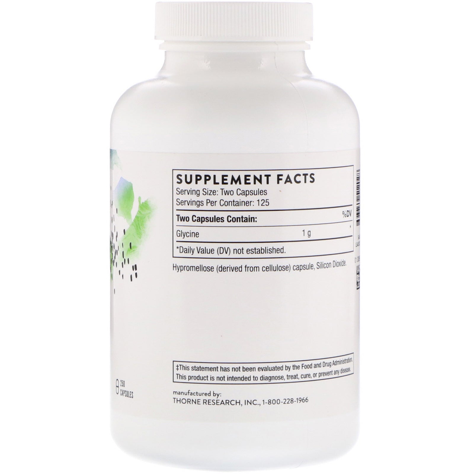 Tamaño de la porción: Dos cápsulas Porciones por envase: 125 Dos cápsulas contienen: % del valor diario de glicina 1 g * *Valor diario (VD) no establecido. Descargo de responsabilidad