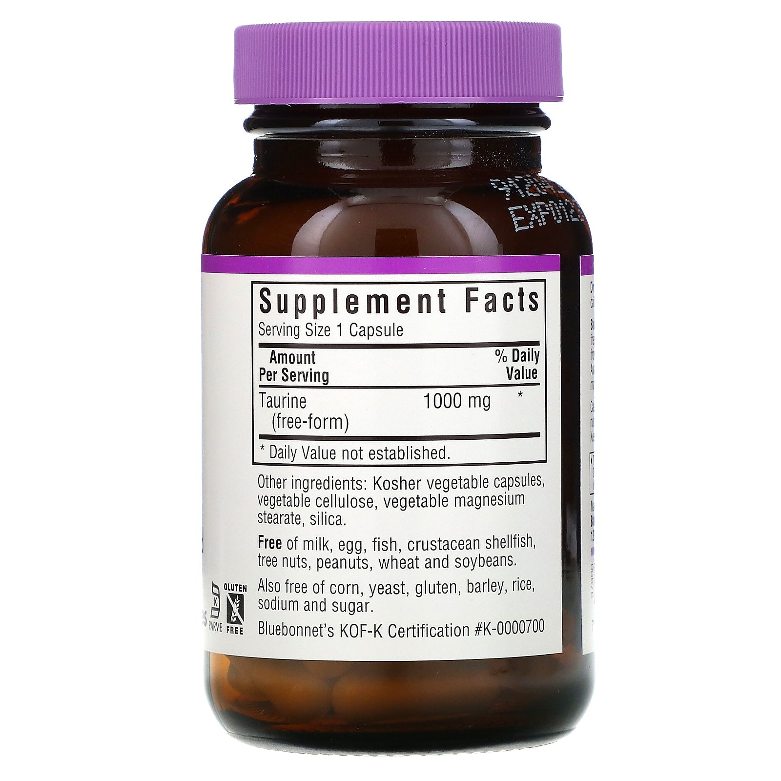 Bluebonnet Nutrition, Taurina, 1000 mg, 50 cápsulas vegetales