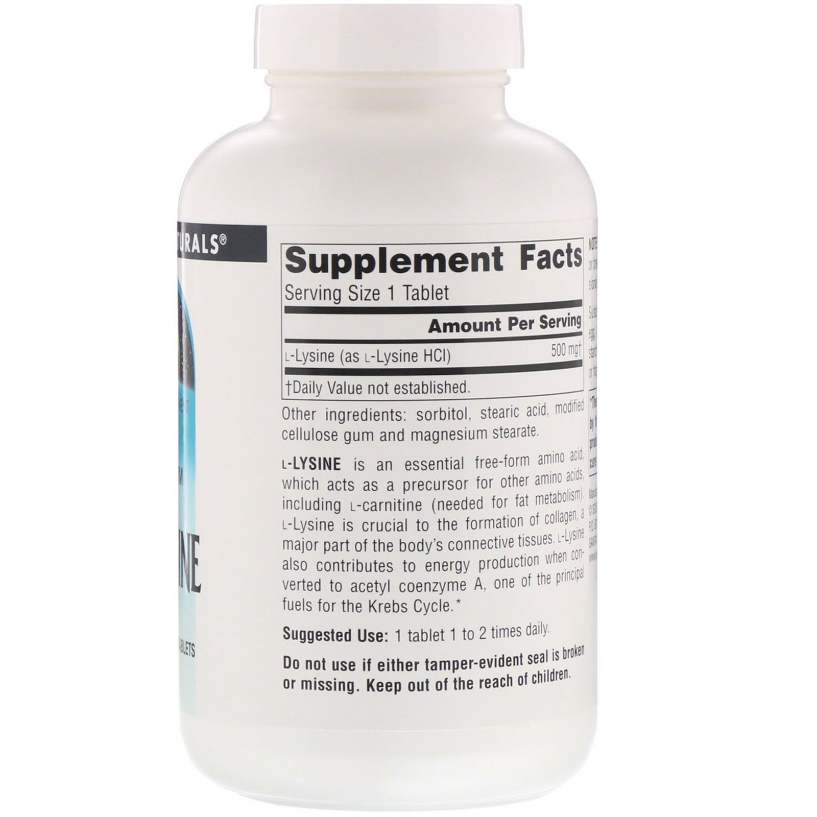 Source Naturals, L-lisina, 500 mg, 250 tabletas