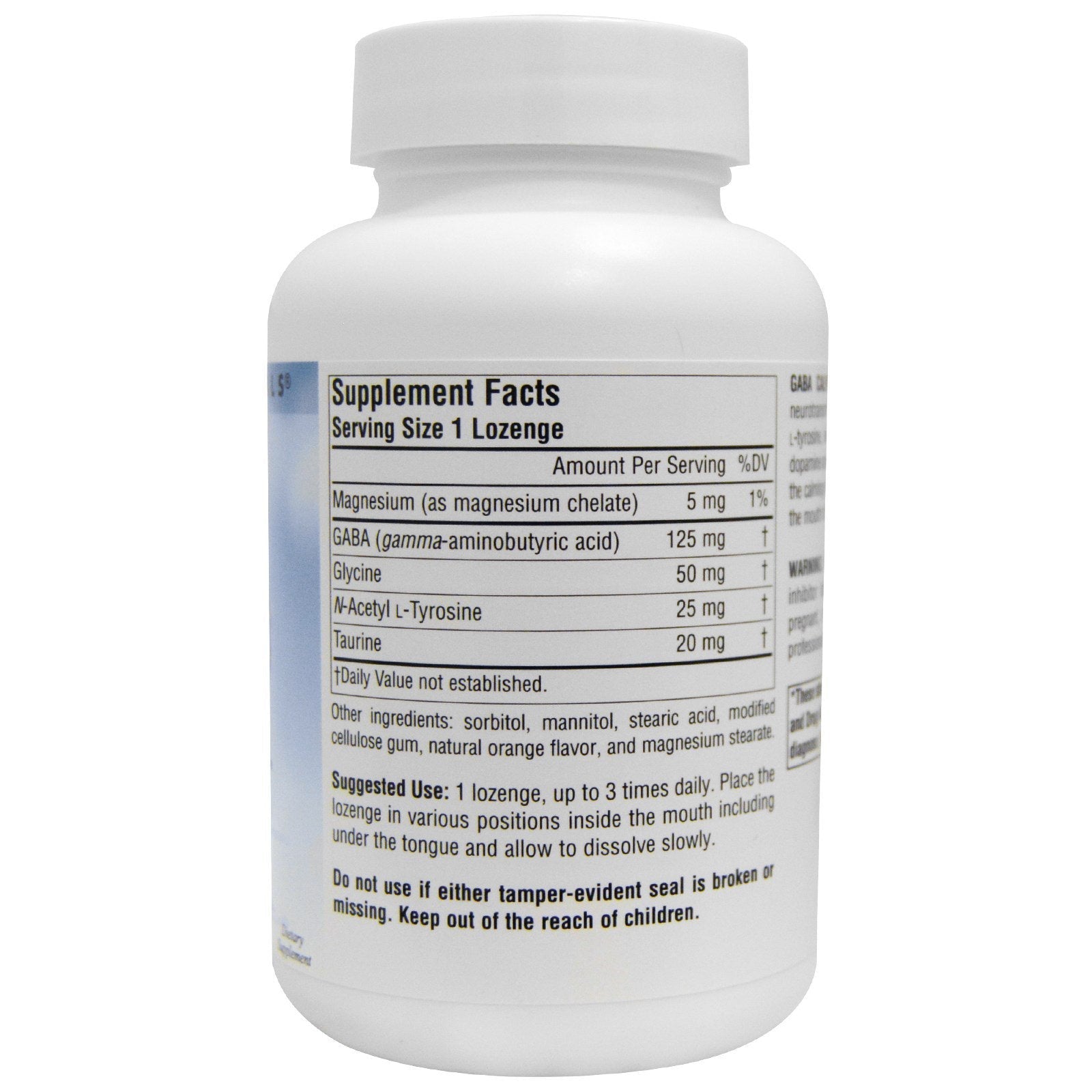 El suplemento dietético Calm Mind GABA Calm combina dos de los principales neurotransmisores inhibidores, GABA y glicina, con N-acetil L-tirosina, que es un precursor de los neurotransmisores dopamina y norepinefrina. Además, la taurina favorece los efectos calmantes del GABA. La forma de pastilla se disuelve en la boca para una administración rápida y cómoda. Sugerir. Usar 1 pastilla, hasta 3 veces al día. Coloque la pastilla en varias posiciones dentro de la boca, incluso debajo de la lengua, y déjela que se disuelva lentamente. Otros ingredientes Sorbitol, manitol, ácido esteárico, goma de celulosa modificada, sabor natural de naranja y estearato de magnesio. Hechos suplementarios Tamaño de la porción: 1 pastilla Cantidad por porción: %DV Magnesio (como quelato de magnesio) 5 mg 1% GABA (ácido gamma-aminobutírico) 125 mg † Glicina 50 mg † N-acetil L-tirosina 25 mg † Taurina 20 mg † †Diariamente Valor no establecido. Descargo de responsabilidad Si bien...