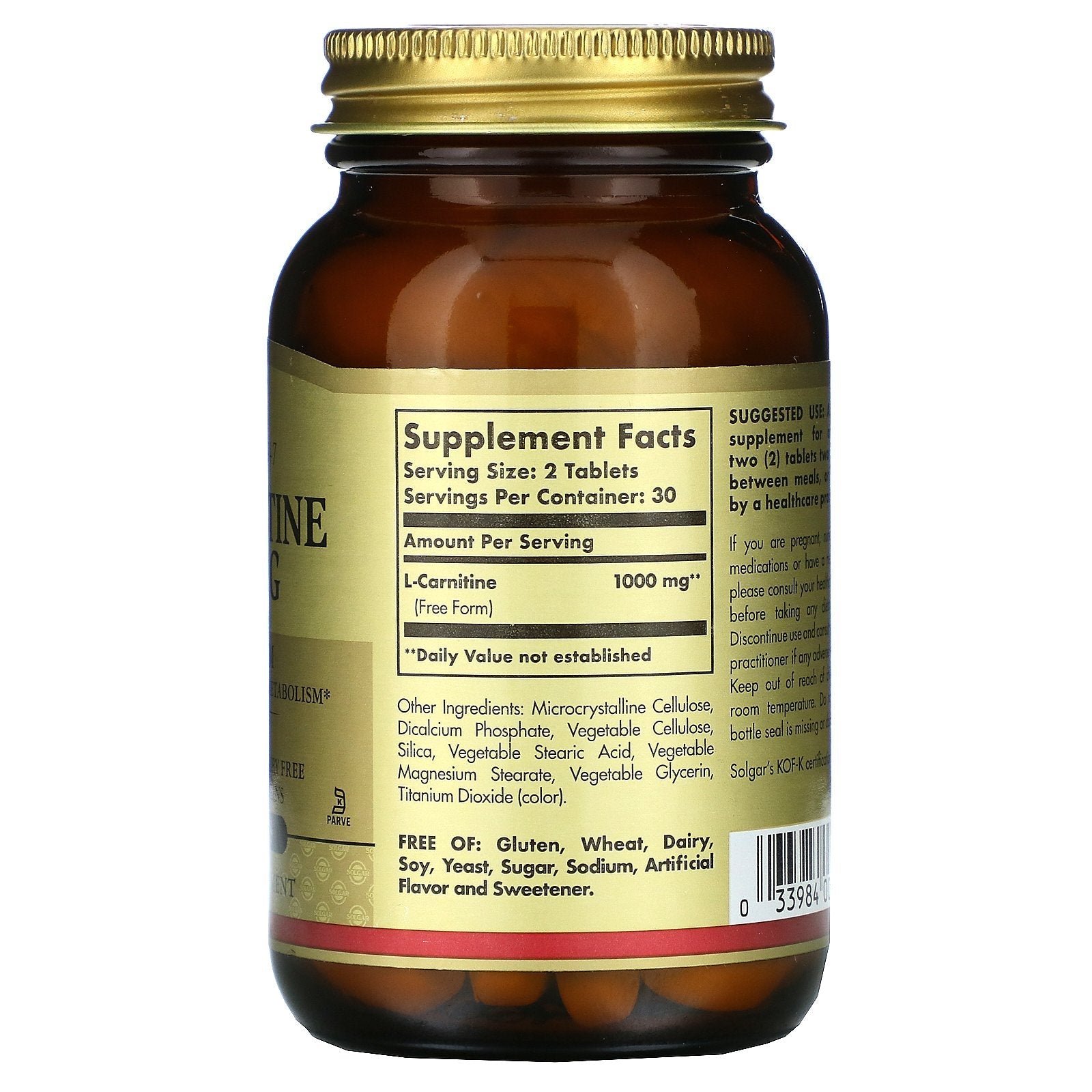 Solgar, L-Carnitina, forma libre, 500 mg, 60 tabletas