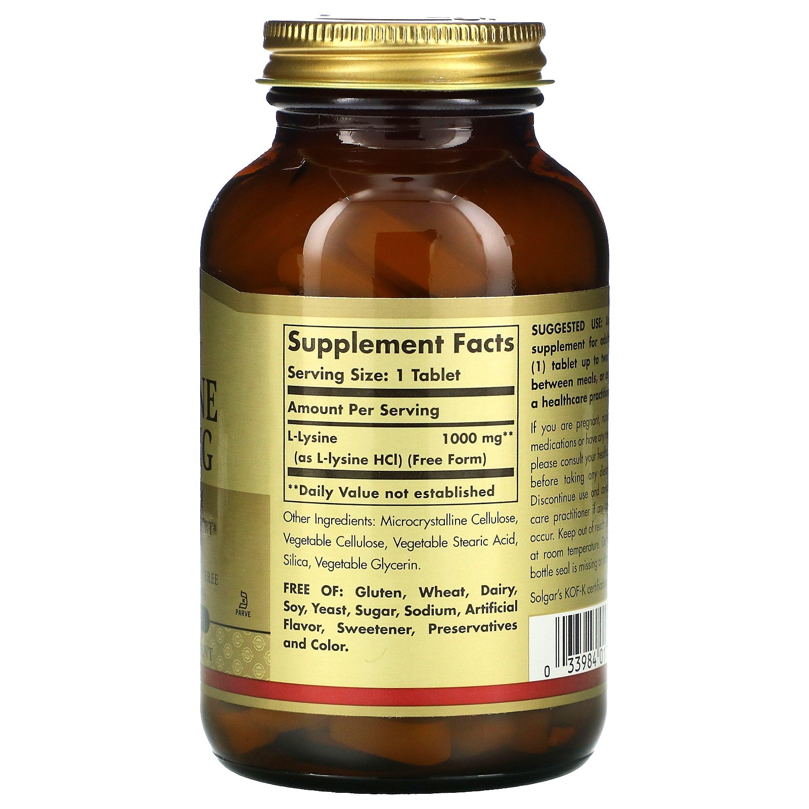 Solgar, L-lisina, forma libre, 1000 mg, 100 tabletas