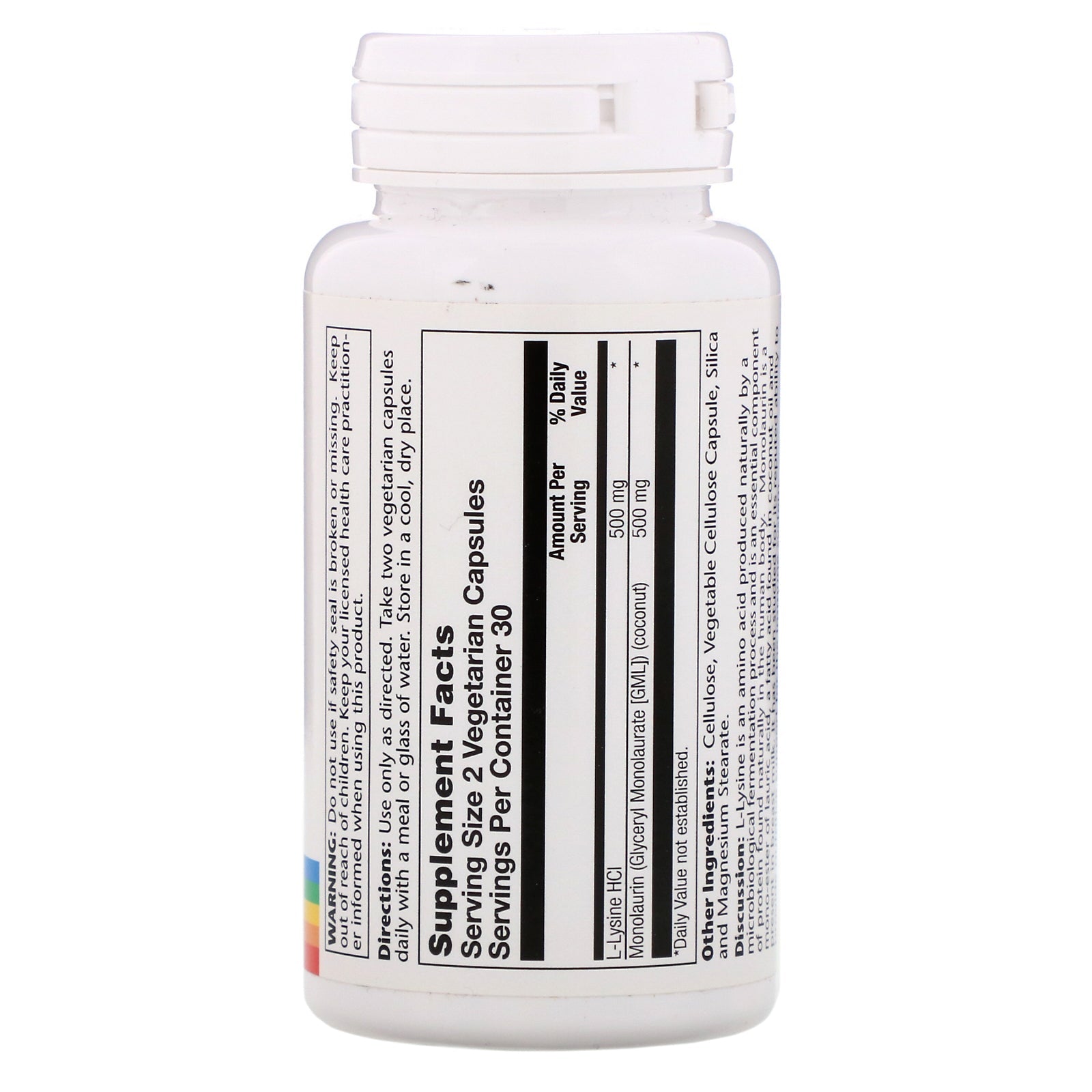 Solaray, L-lisina monolaurina en proporción 1:1, 60 cápsulas vegetarianas