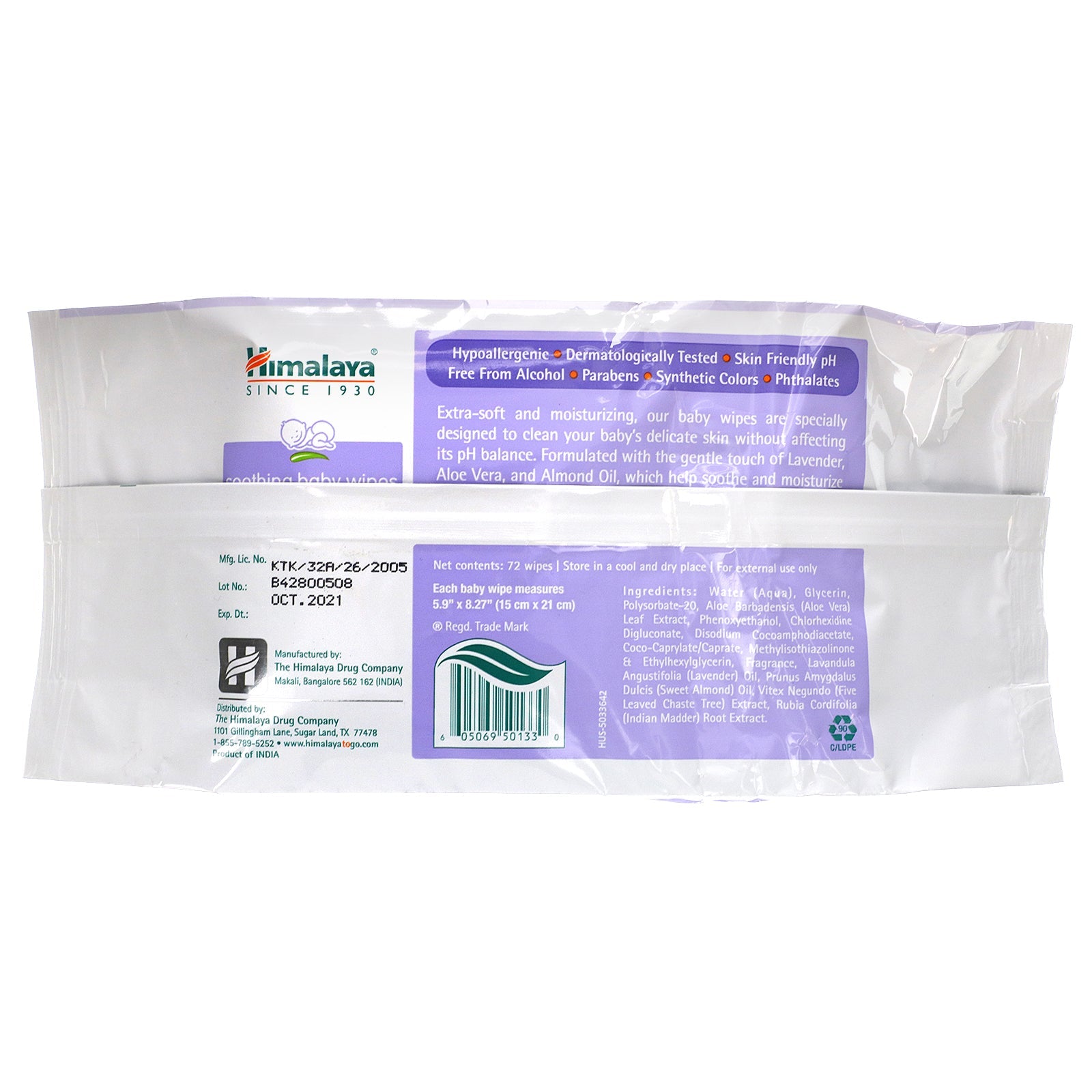 Since 1930 Vegan For Tender Baby Skin Lavender Refreshes Your Baby's Skin Hypoallergenic Lavender - Aloe Vera Happiness through Wellness Soothes and Moisturizes Baby's Skin Sensitive Skin Dermatologically Tested Skin Friendly pH Free from Parabens, Synthetic Colors, Phthalates Extra-soft and moisturizing, our baby wipes are specially designed to clean your baby's delicate skin without affecting its pH balance. Formulated with the gentle touch of Lavender, Aloe Vera, and Almond Oil, which help soothe and moisturize baby's skin. Let the calming scent of Lavender relax your baby. Himalaya baby care products are specially formulated for your baby's tender skin. Clinically tested for mildness, these products help soothe and moisturize your baby's skin.Sugg. UsePull out one wipe & gently clean the baby. Carefully reseal the pack label to keep wipes fresh and moist for the future.Other IngredientsWater (aqua), glycerin, polysorbate-20, aloe barbadensis (aloe vera) leaf extract, phenoxyethanol, chlorhexidine digluconate, disodium cocoamphodiacetate, coco-caprylate/caprate,...