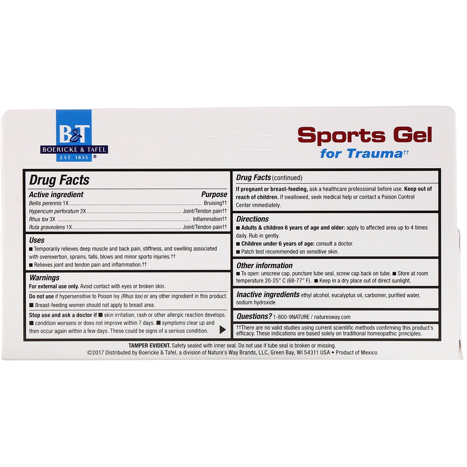 Boericke & Tafel, Sports Gel for Trauma, Topical Gel, 2.5 oz (71 g)